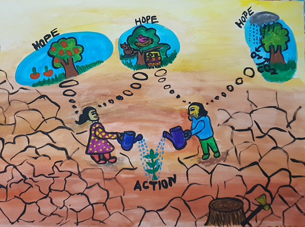 Here I would like to attach my works to join the Hope and Action Art project.