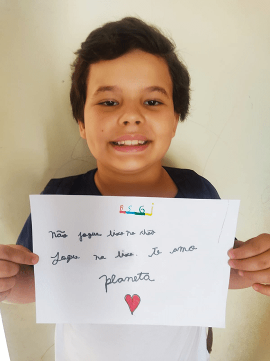 Don’t throw the trash on the ground, throw it in the trash can. I love the planet.