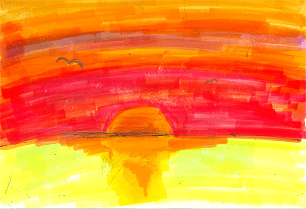 I drew this picture because I thought the summer sunset sky was beautiful. I was particular about gradation.