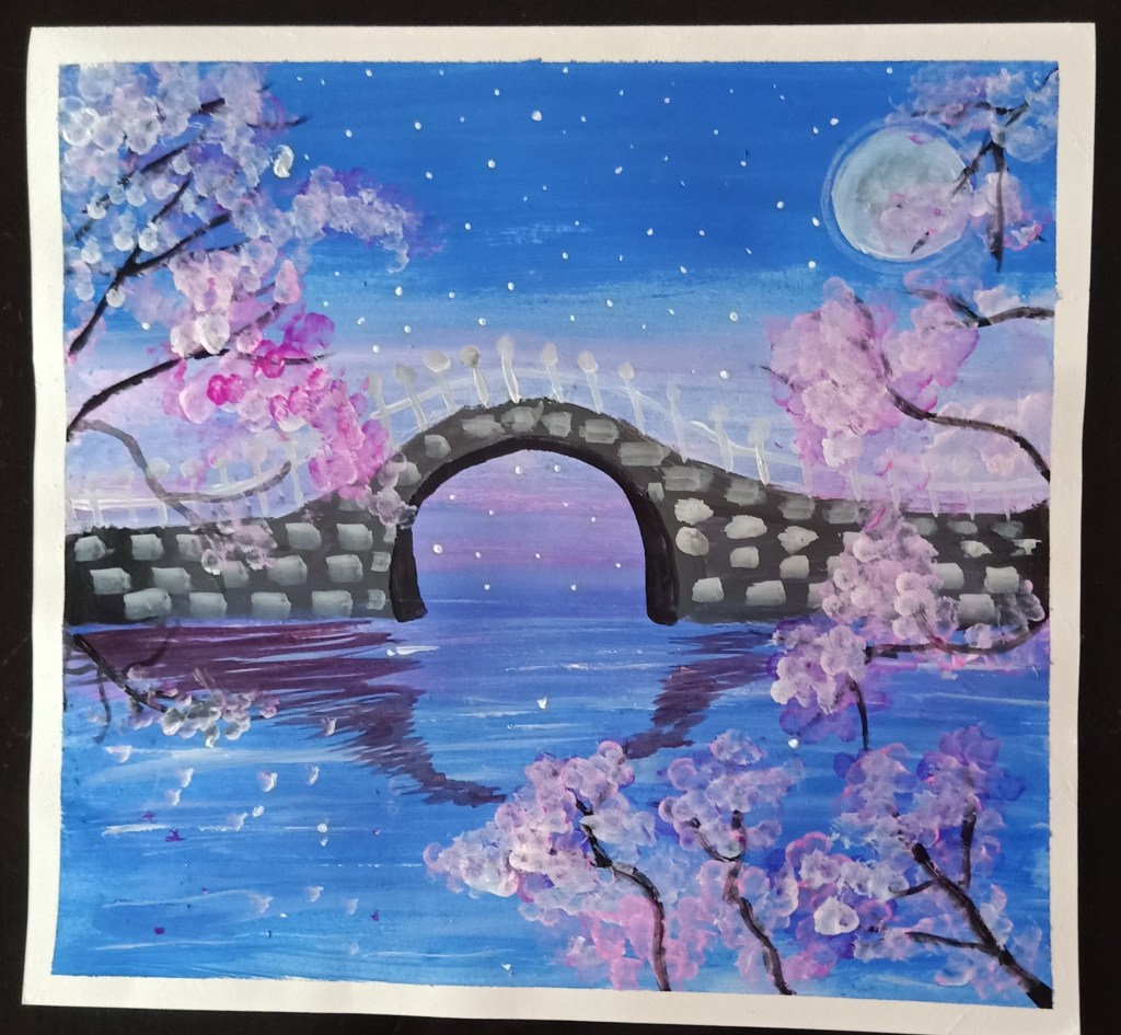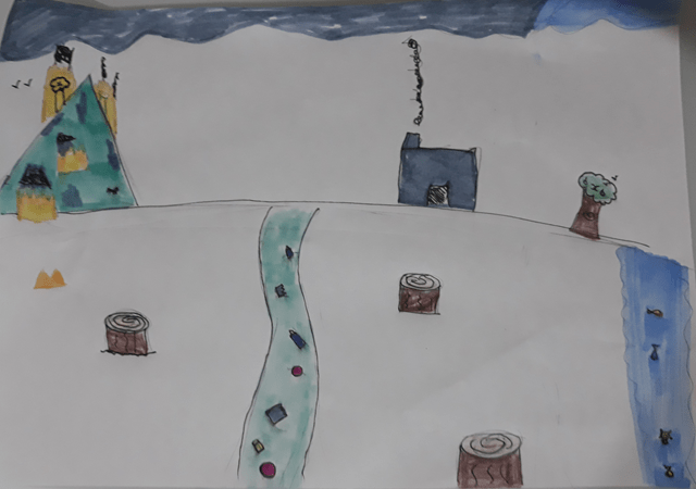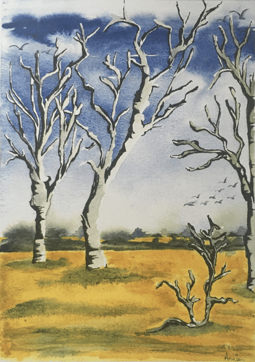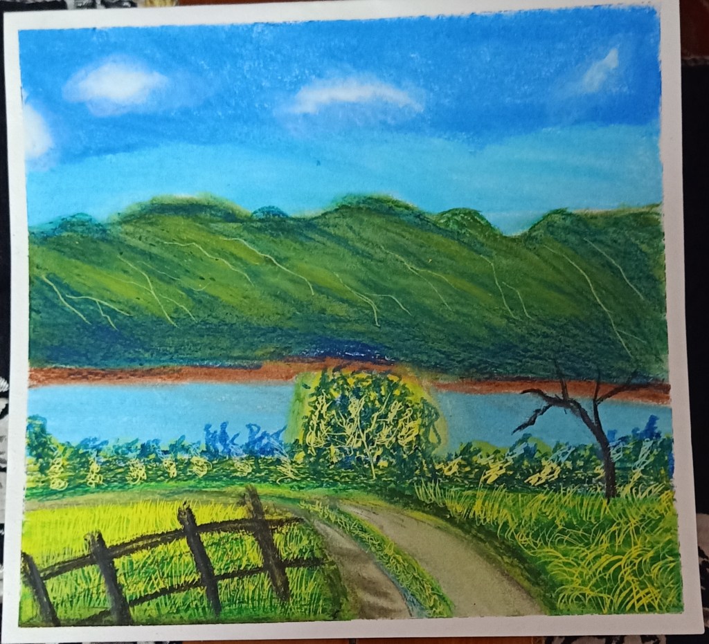 My painting is of a village called Wentworth in this summer and by travelling and painting areas where nature is really beautiful, where there is no pollution, I want to promote this idea of the importance of protecting such beautiful environment for our health and the beauty and durability of our planet. If nothing is done to protect nature, such beauty will disappear. Travelling makes us aware of what we have and don’t want to lose. This is drawn with a pen, and then painted with watercolour and I also used an artistic application. It can be printed as a poster and the colours will remain the same. The painting has colours which are a bit less bright.
