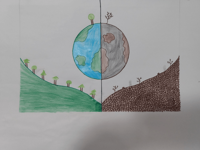 I’ve drawn Mother Earth playing with all the beautiful wild creatures. Earth has always given us every comfort and necessity of life. So we must also protect it and care for it in the best way . It is the responsibility of a human being to protect nature. We, as humans, should refrain from doing any harm to nature if we need to provide a good natural environment to the future generations. Each and everything in nature, including living or non-living organisms, play an important role in maintaining the balance to create a viable environment for all of us, which is called ecological balance. We need to make sure that the ecological balance should be maintained at all times to avoid a catastrophic situation in the future. Nature is a god gift to this world . Its beauty is not only seen, heard or smelt by us, it’s a feeling that can’t be erased. No man made beauty replaces the natural beauty with some small drop on plants and glass windows (specially in winters) , a beautiful sunset nearby oceans, seas, beautiful night with twinkling stars , a beautiful clear blue sky and how can I forget about rainbows . In my artwork I tried my level best to uphold Nature’s beauty.
